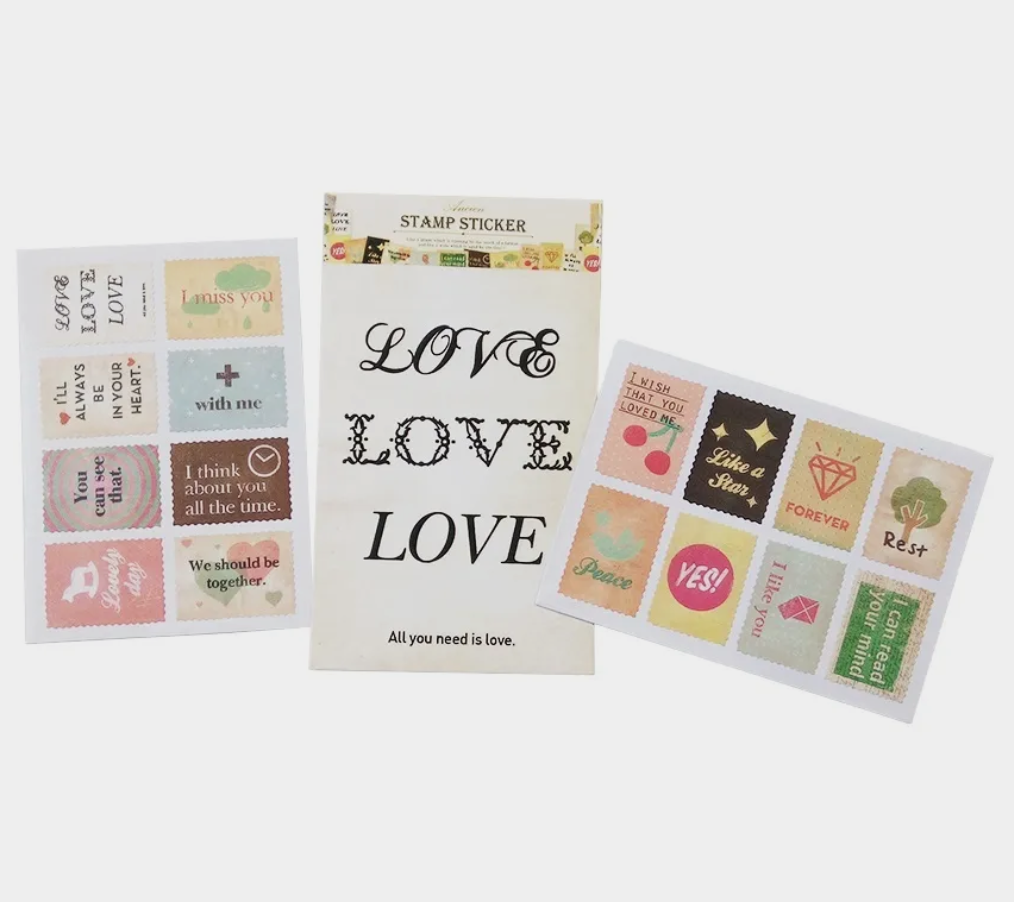 Наклейки выполнены в виде декоративных марок.
